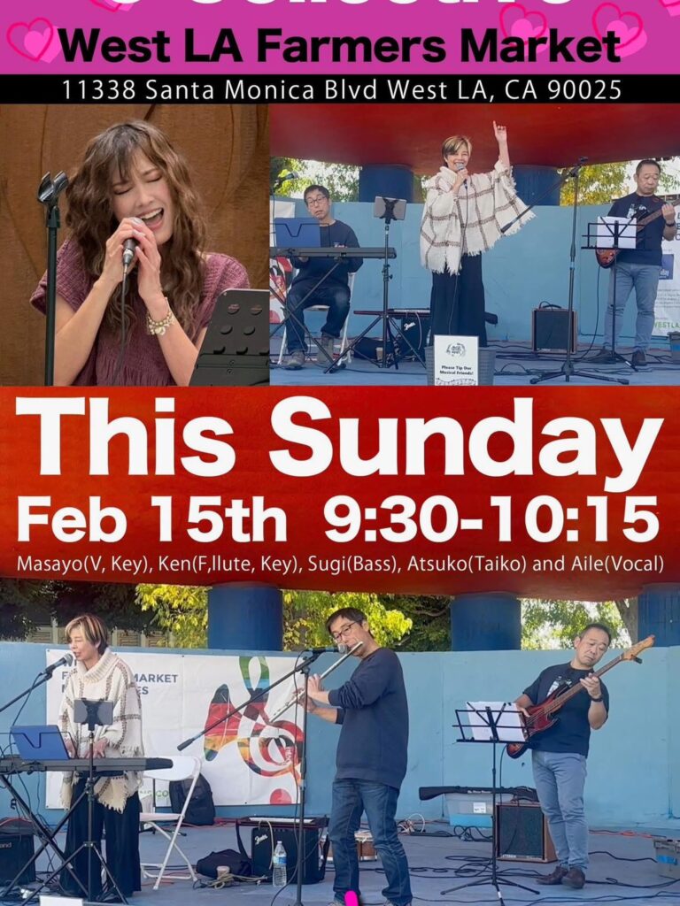 2月15日に開催されるWLAファーマーズマーケット(Purdue Aveのpolice station横)でのフリーライブ、J-Connectiveのメンバーとして aile が出演いたします。